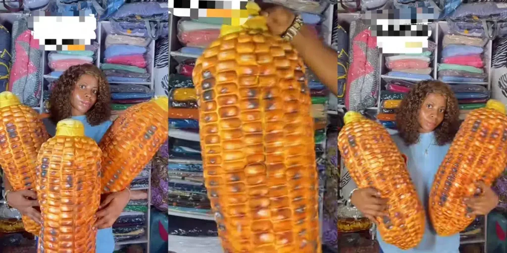 Nigerian businesswoman sparks online buzz by showing off a pillow resembling a roasted corn, leaving social media users amused and impressed by its realism.