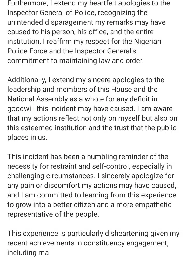 Furthermore, I extend my heartfelt apologies to the Inspector General of Police, recognizing the unintended disparagement my remarks may have caused to his person, his office, and the entire institution. I reaffirm my respect for the Nigerian Police Force and the Inspector General’s commitment to maintaining law and order.