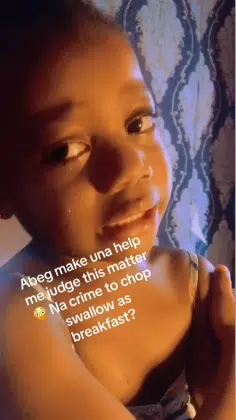 A trending video captures a little girl’s emotional outburst as she cries out for a breakfast change, after eating eba consecutively each morning.