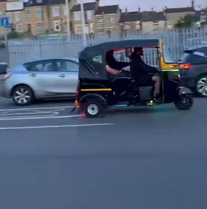Man expresses shock as he shares video of a tricycle a.k.a keke napep he spotted in UK.