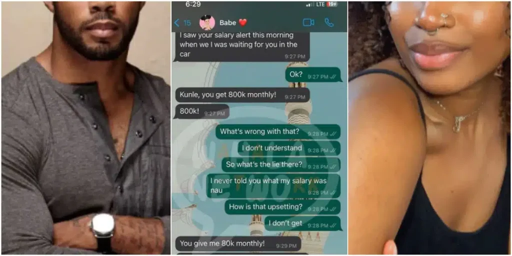 In the leaked chat, the girlfriend, whose previous monthly allowance was N80,000, demanded an increase to N250,000 after discovering that her boyfriend, Kunle, earns N800,000 a month.